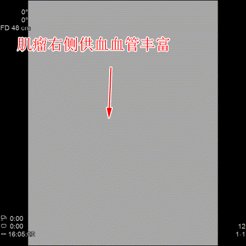 △術後造影可見肌瘤左右側的供血已被掐斷。